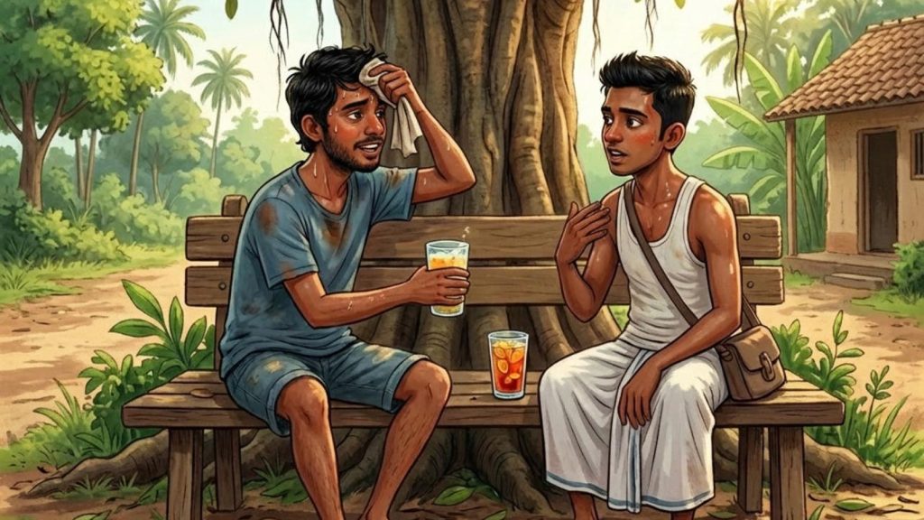 නිමල්: “අම්මෝ සාලිය… මේ රස්නෙ නන් ඉවසන්න බෑ. ඇඟ පිච්චෙනවා වගේ!” සාලිය: “ඒකනේ බං. මේ වෙලාවට කූල් බීම එකක්, අයිස්…
